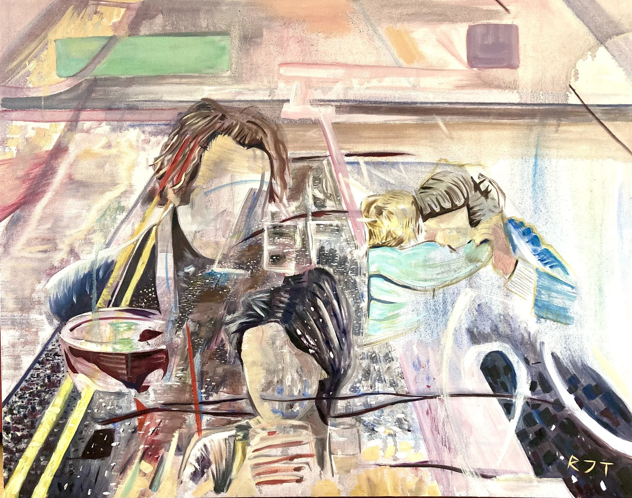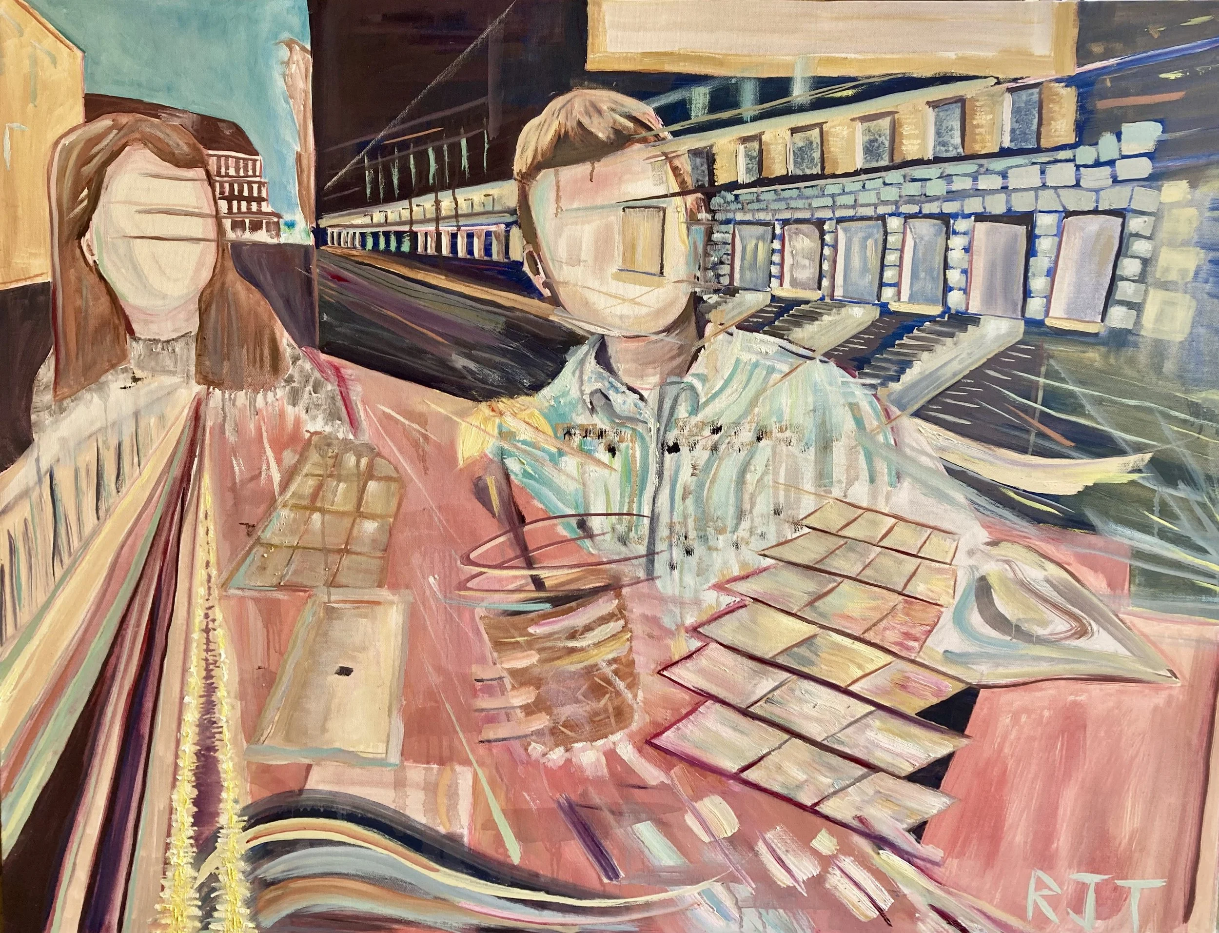 Painting has recently become central to my existential inquiry into why we do what we do, and how it feels to do it. Most of my artworks are portraits of some kind, explorations of humans in the built environment. The painting on the left is not; it was my first oil painting. As a researcher, one learns to practice and experiment with method. I’ve always made art, but moving to oils encouraged me to attempt a deeper ethnographic enquiry through paint.